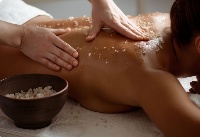 Massagem + Esfoliação + Drenagem, promovendo renovação e desintoxicação corporal.