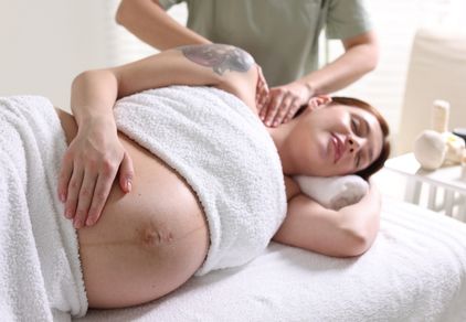Massagem Dreno Relaxante, voltada para o bem-estar materno.